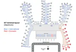 Istanbul airport departures layout (including terminal entrance doors, check-in aisles and gates)