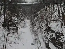 - Waterfalls - many of the local waterfalls are located in state parks with hiking trails that were built (or rebuilt) by public works projects in the 1930s, often featuring stone staircases and bridges. The waterfalls are found along creeks that flow into Cayuga Lake. At parks with trails, you will typically find a "gorge trail" that follows the course of the creek, and a "rim trail" along the edge of the gorge, with overlooks to the falls underneath.