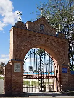 When you approach the site from Kutuzova St., the first thing you see are two ornate gates. Although often confused with fortress gates, they in fact belong to a later period and flank the entrance to the Romanian cemetery that was created at the end of 19th century and existed on the premises before World War II. Similar to the fortress, the cemetery was destroyed by the Russian/USSR authorities, although it was not nearly as menacing. The left (southern) gate is a gate of the Cemetery of Russian Soldiers who died during the Siege of Izmail (1790). The Cemetery is located on the place of the former Cavalier Bastion of the fortress. The gate brings you to the rebuilt memorial of Russian soldiers, the ruin of a Romanian mausoleum (so dilapidated that it can be confused with a piece of ancient Greek heritage), and the information table in Russian, dedicated to the history of Izmail Fortress.