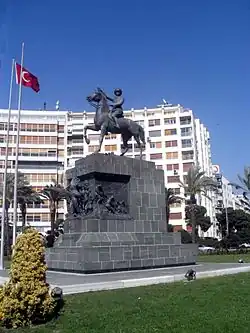 - Atatürk Monument is the centrepiece of Cumhuriyet Meydanı, Republic Square, in front of the Swissôtel. It was erected in 1932; the great man lived to 1938. "Orduların, ilk hedefiniz Akdeniz'dir. İleri!" are his stirring words on the base: “Armies, your first target is the Mediterranean Sea. Forward!”. With only 60 m further to go, this is an easier objective than when he uttered those words in 1922, with the Greeks at the zenith of their advance and the backs of the Turks against the threshold of Ankara.