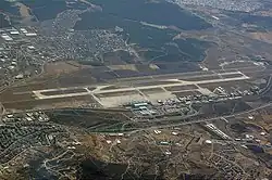 🌍 Izmir Adnan Menderes Airport (ADB IATA) (off D550, 16 km south of city centre), ☏ +90 232 455 0000. This has frequent flights from Istanbul IST and SAW, Ankara and Antalya, and daily from several other Turkish cities plus Ercan in Northern Cyprus. There are also flights from Athens, Frankfurt and across Europe. Operators include Turkish Airlines, Pegasus, Ajet (formerly known as Anadolujet) and SunExpress (which has a hub here) so this competition keeps fares low. The airport has the usual facilities including car hire.
