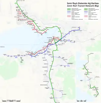 - North Line runs from Alsancak to Turan, Mavişehir (for trams), Çiğli, Menemen and Aliağa (for connections to Foça and Bergama).