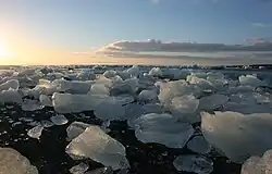 - Ice on the beach - In addition to viewing the lagoon, consider visiting the beach to see ice that has washed up on the shore. On either side, east and west, of the bridge over the discharge from the lagoon there are tracks to parking areas a few hundred meters from the road. During the winter, the beach on the east side of the bridge provides the best vantage point for sunrise. The beach on the west side of the bridge is oriented southwest and aligns nicely for sunset.