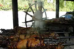 - 🌍 Zdrava Voda, Mostarska (follow the highway to Mostar, few hundred metres past the museum), ☏ +387 36 753 151, fax: +387 36 757 087, zdravavoda@bih.net.ba. On the highway south of Jablanica, with a 40-year tradition in grilled veal, roasted lamb, and grilled trout. Serves local alcoholic drinks (beer, wine). 11 KM - 30 KM.