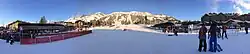 Panoramic view from the base of ski slopes at Jackson Hole Mountain Resort