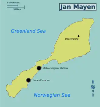 Jan Mayen is an island between Greenland and Norway in the Arctic Ocean, administered by Norway. The island has 18 inhabitants, employed by the Norwegian Armed Forces or the Norwegian Institute of Meteorology.