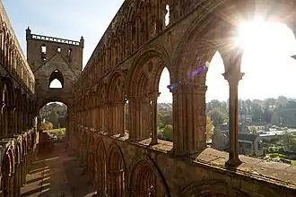 - 🌍 Jedburgh Abbey, Abbey Bridge End TD8 6JQ, ☏ +44 1835 863925. Apr-Sep: 10AM-5PM, Oct-Mar: 10AM-4PM. This ruined but imposing Augustinian abbey was founded in 1138 and was a frequent target for invading English armies. It continued in use as a parish church at the Reformation in 1560, saving it from wreckage, and it served until 1871 when a new town church was built. There is a cloister and herb garden, and a visitor centre with 8th-century carvings and artefacts excavated from the abbey grounds. In 2022 the abbey interior is closed for building safety, but you can see plenty from the street. £3.50.