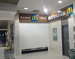 If you keep kosher, Jerusalem is a wonderful place to visit. In the Jewish sections of the city almost everything is kosher. However you should still check for the kashrut certificate on the wall. If you don't see it and the staff cannot show it to you, it's a good sign to move along. The certificate is stamped בשרי ("basari", meat) or חלבי ("halavi", dairy). The current Jerusalem certificates are cream colored for normal certification, light purple for stricter certification ("mehuderet"), and marbled brown colored for strictest supervision ("mehadrin"). Certificates are valid for 6 or 12 months at a time (typically until Pesach or Rosh Hashana) with the expiration date prominently marked. Note it is not unusual for it to take a few days to get the new certificate up. In Haredi areas, the municipal kashrut certificate may be missing, but a certificate from a local Haredi organization will be provided. Also note that only some branches of McDonalds in Jerusalem are kosher. Kosher branches have yellow arches on a blue background, rather than the usual red background.