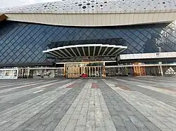 - 🌍 Jiaxing South Railway Station (嘉兴南站), Shuangxi Road, Liming Village, Yuxin Town, Nanhu District (南湖区余新镇黎明村双溪路) (in the city's south; Line 1 of the Jiaxing tramway terminates here). You can save a few minutes on your train journey from Shanghai or Hangzhou by taking the high-speed rail to Jiaxing South station but the station is further from the city center. You can get to the city center from here by taking take a bus, tram or taxi cab.