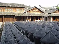 - 🌍 Eastern Quarter (东栅, Dongzha), Northwest of the intersection of Yaotai Road and Ziyi Road, Tongxiang City (main entry is from Ziye Road, near parking lot). Redeveloped and opened as a tourist attraction earlier, the Eastern Quarter or Dongzha features a variety of preserved or restored old-style shops, temples, houses and streets. It has a large variety of small museums and other attractions, but is viewed as slightly less authentic than the Western Quarter, as the restoration process here was less scrupulous in preserving the buildings' original appearance. It is often crowded. The former residence of Mu Xin, 20th-century international Chinese artist and writer, is located here. While the Eastern Quarter was also redeveloped, most inhabitants remain (unlike the Western Quarter), although some of them also now operate inns, restaurants and tourist-orientated shops. free to enter street, ¥100 to enter all attractions; ¥150 combined ticket with Western Quarter.