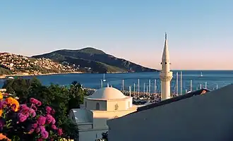 - 🌍 Villa Mahal, off Zeytinlik Sk, ☏ +90 242 844 3268. Small hotel perched on the hillside south edge of town, a stiff slope to the waterfront restaurant and beach club. B&B double 5000 TL.