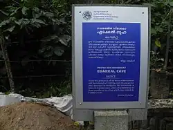 - 🌍 Edakkal Caves (28 km). 9AM-4PM (last entry). This must-see location of breathtaking beauty in the Ambukuthy Mountain is not a cave in the real sense. As stated in the India Antiquary, it is only "a cleft about 96 ft long and 22 ft wide in the rock". The word edakkal (eda+kal) means middle of the rock. It is a fissure made by a corner of rock splitting off from the main entrance to Edakkal Caves due to some natural causes. The depth of both the cleft and the fissure is 30 ft. What makes it a cave to the ordinary observer is the fact that in the other portion of the large cleft, an enormous rock, weighing several tonnes, has fallen forming a roof over a large part of it. The rock wall contains some interesting carvings, which represent human and animal figures and objects of human use and symbols. These carvings, dating to the Neolithic age (6000 BCE), speak of a highly civilized people of pre-historic age and inspires the archaeologists and historians to rewrite the history of Wayanad and Kerala as a whole. Specifically, look out for the carvings interpreted as the woman with the jug, the sun, the chieftain, the animal, and the peacock. The caves were discovered in 1894 by an English police superintendent named Fred Fawcett. The story goes that he discovered a hunting axe, which eventually led to the discovery of the caves. However, the caves were taken over by Archeological Survey of India only in 1984, so some vandalism can also be spotted on the walls. A vertical cleft near one of the corners offers a rare view of Wayanad. These caves are said to have been frequented by Jain monks at a later age. The guard at the caves may be ready to help out with information. The caves are accessible now with steep but strong steps. There are excellent views of Wayanad on the way up, and there are a separate set of steps leading down as a faster route. ₹30.00, additional for camera.