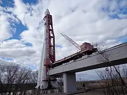 - 🌍 Vostok launch vehicle. On June 21, 1973, a real rocket (duplicate) "Vostok" measuring 38 m was installed in the park named after K.E. Tsiolkovsky near the Museum of Cosmonautics.