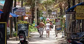 "Rim Haad" (Beach Road), at the southern end, has a number of small 20-30 room hotels for the low/mid-budget traveller. Friendly service and village feel and a diversity of restaurants and small bars can be found on this small road. Cheaper food options/market stalls can be found on the main Kamala Rd.