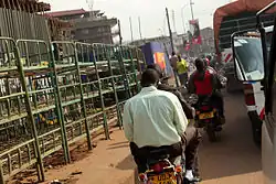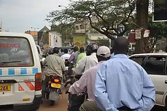 The fastest and most dangerous method is the boda-boda: motorcycles that you see all over the city. You won't be in Kampala long before being propositioned by a boda driver. If you're not interested, a simple 'no' will get them to leave you alone. You can get most anywhere on the back of one for USh 2000-5000, but make sure to agree on the fare before the ride begins.