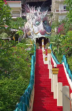 Hellfire Pass.Only relocated in the 1980s, Konyu Cutting (known as Hellfire Pass by POWs and Asian labourers who cut and blasted through rock by hand to clear this pass for the Death Railway) has been reclaimed from the jungle as a profound war memorial funded by the Australian government. Excellent museum and self-guided walking tour facilities are available (donations welcome). Highly recommended. The descent through the jungle down to the pass (listening to oral histories through audio headsets) is a moving experience. Before leaving, take a moment to reflect at the peace lookout overlooking the beautiful Kwai Noi Valley. More challenging walking options are available. Annual Anzac Day Dawn Service are held here. 80 km northwest of Kanchanaburi. For a day trip, consider taking the morning train from Kanchanaburi to Nam Tok (2.5 hr), then samlor to the memorial (20 min); return by bus (1 hr) or afternoon train. Nam Tok to the Museum is quite a distance. It may be that your only option is a bus from the main road, which means walking from the station to there. Songthaews may be available.(updated Feb 2019)