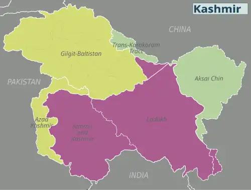 While Kashmir is disputed, each region is described on Wikivoyage as part of the country which has de facto control. This should not be seen as a political endorsement of any claim.