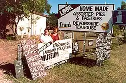 - Fran's Devonshire Tea House, Stuart Highway, Larrimah, Katherine Region, โ +61 8 8975 9945. Fran's Devonshire Tea House, in the old Larrimah Police Station and Museum. Fran serves delicious fare, including homemade camel and buffalo pies, sausages, pasties, sausage rolls, apple pie, waffles, scones and Devonshire teas, as well as fascinating historical information for Larrimah and the Northern Territory. Fran's Devonshire Tea House is open for breakfast, lunch and dinner, seven days a week.