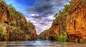 Its most well-known watercourse is the Katherine River, which flows through the famous Katherine Gorge. The gorge, 30 km from the town of Katherine, within the Nitmiluk National Park, is actually 13 separate gorges connected over a stretch of 12 km by rapids and rocky terrain.