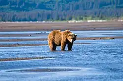 The park contains a huge number of Alaskan brown bears, which grow to enormous size after feeding on the summer salmon runs.
