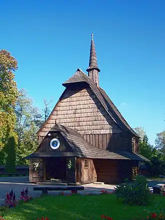 - 🌍 St Michael the Archangel, Kościuszko Park. 24 hours. Charming little wooden church, built in 1510 in Syrynia near the Czech border. It was moved here in 1938 to form the nucleus of a heritage park, which never happened. Somehow it survived the war and was restored to use from 1956. Closed for renovation as of June 2024, without a reopening date.