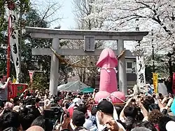 In festival time, a little market selling penis-shaped candies and other sexual paraphernalia pops up on the shrine grounds.