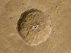 - 🌍 Huge explosion crater. It is not far from Shymkent city although is pretty hard to reach. Diameter is 200 meters and 20 meter deep. It took around 5 kiloton TNT to dig crater of this size. No radiation detected. In spring some wild ducks nurse their ducklings in water puddle inside crater.