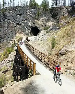 🌍Myra-Bellevue Provincial Park,accessed via McCulloch Rd (main entrance) or June Springs Rd.Home of the famous wooden trestles of the old Kettle Valley Railway, which were rebuilt after being burnt down. They provide a unique and beautiful view of the Kelowna area, and of the uninhabited areas surrounding it. These are about an hour's drive outside of Kelowna - up a dirt road.