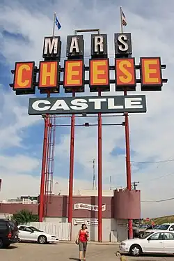 - π Mars Cheese Castle, 2800 W Frontage Rd (take exit 340 off of I94, turn west onto Burlington road; turn south onto Frontage road and look for the entrance on the left), toll-free: +1-800-655-6147. The hours are all over the place depending on the season, but it's usually 9AM - 7PM. No-one knows what Mars has to do with cheese or why it's in a castle. The vast selection of Wisconsin's finest and most famous dairy product prevents us from asking too many questions. In addition to an ungodly amount of cheese, the castle has imported chocolates, wine, local and imported beers, a deli, and touristy kitsch. Even if you don't buy anything, it's a nice place to stop, stretch your legs, and take a picture in front of the big sign.