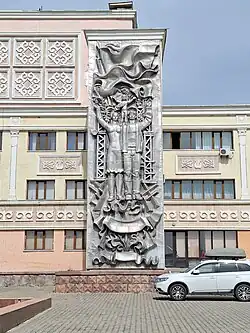 - 🌍 Soviet relief on a Culture Palace. Metal relief on a façade.