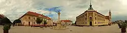 - Holy Trinity Column (Szentháromság-szobor). It was installed in 1770. Staues of saints at the base are: Saint Roch, Saint Florian and Saint Sebastian.