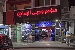 - 🌍 Wimby el-Bassatin (auch Wimpy Restaurant) (Downtown near Midan el-Bassatin, at the southern side of the palace). daily 08:00–01:00. The only restaurant in Kharga open throughout the day. No English menu, but staff understands English. They serve a wide range of food: chicken, liver, lasagne, soups, rice, vegetables, salads, kofta and kebab.