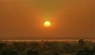 Khartoum (Arabic: الخرطوم Al-Khartum) is the capital of Sudan and is located where the Blue and White Niles merge to form the Nile. The huge, spread-out city is actually made out of three distinct cities (Khartoum, Khartoum North or Bahri, and Omdurman) which are divided by the Nile and its two arms. The Blue Nile flows between Khartoum and Bahri, the White Nile between Khartoum and Omdurman, and the merged Nile between Bahri and Omdurman. The confluence of the Blue and White Nile, known as Al-Mogran, lies just north of the bridge between Khartoum and Omdurman.