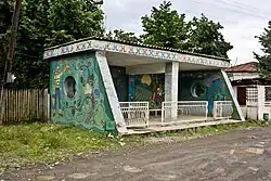 The 🌍 Nodar Dumbadze-Bridge Nodar Dumbadze-Bridge, a simple, narrow concrete bridge from the 1950s, spans the river Gubaseuli. You can reach the main square of the town by a tall maple tree whose canopy leaves appear on the bridge like a tunnel. 🌍 The bus stop with splendid mosaics, one of the finest in the country, is on the main square. Furthermore you will find the Former 🌍 Univermag - a constructivist functional building from the 1970s, now vacant; and the Urban Park with 🌍 Monument dedicated to Stalin's speech.