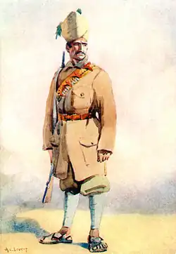 1910 painting of the legendary Khyber Rifles para-military force, which first formed in 1878.