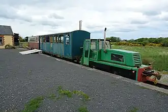 - π West Clare Railway is recreated at Moyasta on N67. This notoriously unreliable railway was a 3-ft (914-mm) narrow gauge, operating 1887-1961. Built to revive the local economy after the Famine, it meandered from Ennis through the fields to Milltown Malbay and Moyasta junction, where one branch continued to Kilrush pier and another to Kilkee. In 1896 the entertainer Percy French successfully sued it for making him very late for a show. When he arrived late for the court hearing, that too was because "I took the West Clare Railway here, your Honour". All that remains of the line is 2 km of track at Moyasta junction, worked by original 0-6-2T steam locomotive Slieve Callan. True to its tradition, the railway is closed ufn.