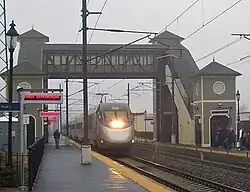 - π Kingston station (Amtrak), 1 Railroad Av, West Kingston, β +1 800-872-7245, +1 401-295-1100 (for information and required reservations). This renovated historic train station has been there since 1875. It is one of Rhode Island's three stations. Van/car service is available to Newport. Kingston train station has affordable fares and regularly scheduled departures/arrivals. Located in west Kington, the train station is small and easy to navigate. Also the station has a small museum open during operating hours.