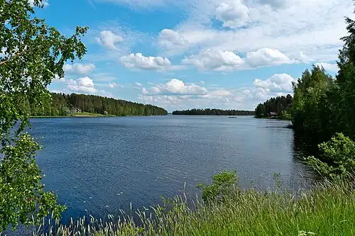 The lake Kivijärvi connects the municipalities. It is 47 km long from north to south, 20 km wide, and with 154 km2 (59 sq mi), it is the 30th largest lake of Finland. It has some 500 islands, corresponding to 10% of its area. Ninety of the islands are larger than one hectare. Also the 40-km², 18-km-long Vuosjärvi downstream from Himonkoski may be nice to explore, with a hundred islands, as might several smaller lakes.