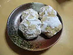 • Kuri Manju (Fujikakeya) (栗まんじゅう:藤掛屋), 2-5-2 Nishikicho (15 minute walk from the South Exit of JR Kiryu Station), +81 277-45-0630. These chestnut-shaped manju (cake buns) are filled with red bean paste. These extremely popular manju are available at the Fujikakeya Kuri Manju shop in Nishikicho, Kiryu. Closed on Tuesday.