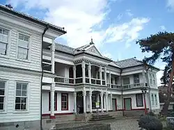 • 🌍 Kiryu Meijikan (桐生明治館), 2-414-6 Aioicho (10-minute drive from the North Exit of JR Kiryu Sta., 5-minute walk from Watarase Keikoku Railways Aioi Sta.), +81 277-52-3445. Tu-Su 09:00-17:00. Built as the Gunma Prefecture Public Health Centre in 1878, it is a classic example of pseudo-Western architecture. Inside there are exhibition rooms and a coffee/tea shop featuring a nostalgic gramophone and music of the era. Adults: ¥150; elementary and jr high school students: ¥50. OSM directions target=_blank