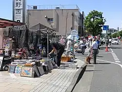• Tenmangu Antiques Flea Market (天満宮古民具骨董市, tenmangū komingu kottōichi), Tenjincho 1chome (on the grounds of Tenmangu Shrine, a 20-minute walk from the North Exit of JR Kiryu Station, in front of Gunma Univ. Kiryu Campus). 1st Saturday of the month (special dates set for January, August & November). Antique dealers from all over the Kanto area converge on this site. Everything from kimono to antique ceramics and furniture is on sale.