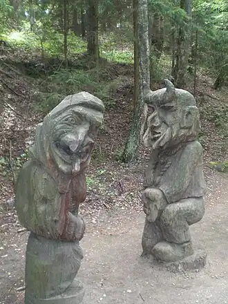 - 🌍 Black Ghost (Juodasis Vaiduoklis). A creepy bronze sculpture by the footbridge spanning the outlet of the castle moat, next to Old Port Hotel. It is a hollow, cowled wraith dragging himself from the water and supposedly terrifying to children, but probably more so to any drunk who's dropped his keys and is scrabbling along the wharf in search.