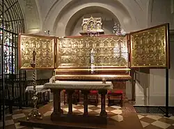 - 🌍 Klosterneuburg Monastery (Stift Klosterneuburg), Stiftsplatz 1, ☏ +43-2243- 411 212, tickets@stift-klosterneuburg.at. Summer: daily 09:00-18:00, winter: daily 10:00-17:00; guided tours daily 10:00-17:00. The monastery was founded in 1114 by Saint Leopold III, the patron saint of Vienna. Over the centuries the monastery was remodeled a number of times; the current appearance dates mostly to the Baroque period. The monastery houses a museum with a collection of Gothic and Baroque art, but its most prized artpiece is the triptych Verduner Altar, painted in 1181 by Nicholas of Verdun. Access to much of the huge complex is by tours only - these depart frequently from the monastery's foyer. Museum and abbey: €10 (adults), €9 (Vienna Card).
