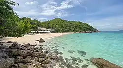 Ko Lan (or Ko Laan or Ko Larn, or Coral Island) is an island 7.5 km west of Pattaya. It covers an area of 5.6 sq. km and has six popular beaches with a decided "day-trip" flavour.