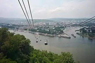 Today, Koblenz is an attractive city that is often used as a convenient base for exploring the region, as it gives easy access, either by car, train, boat or even bicycle, to both river banks of the Upper Middle Rhine Valley and also to the German Moselle Valley. The city itself also has major tourist attractions including Fortress Ehrenbreitstein, the Deutsches Eck and Castle Stolzenfels.