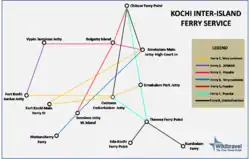 Kochi can be reached by sea in yachts or the occasional cruise ship from Goa, Mumbai, Lakshadweep, Colombo and Male. Almost all leading international cruises on global voyages operate to Kochi from the US and Europe at Wellingdon Island Cruise Berth. Yachts can be anchored at Kochi International Marina or Yacht Club Marina. There is a direct ferry service between Kochi and Lakshadweep.
