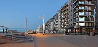 Koksijde is a sea resort in West Flanders. It consists of Koksijde section (with Koksijde-Bad and Sint-Idesbald as the coastal neighbourhoods of the town), the seaside resort of Oostduinkerke and the rural village of Wulpen. In 2018, it had 22,000 permanent residents.
