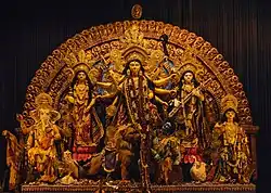 Durga Puja (দুর্গাপূজা Durgāpūjā), a festival honouring the Hindu goddess Durga, takes place between September and October. The biggest festival for Hindus in Bengal, Kolkata takes on an almost carnival-like ambience. Streets shut down for the construction of pandals (প্যান্ডেল, pyānḍel), large stands that depict events from the Ramayana and crowds flock to the biggest and best ones. Durga Puja in Kolkata has been listed as a UNESCO Intangible Cultural Heritage in 2021. A good time to visit, unless you have a fear of crowds.