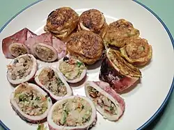 Koreans often snack on kimbap (김밥, the name is a portmanteau of "seaweed" and "rice") which looks like large pieces of Japanese sushi but is usually filled with pickled vegetables, fish cake, sesame oil and sometimes cooked meat. It is always wrapped in dry seaweed.