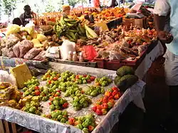 There are several food markets in the town: